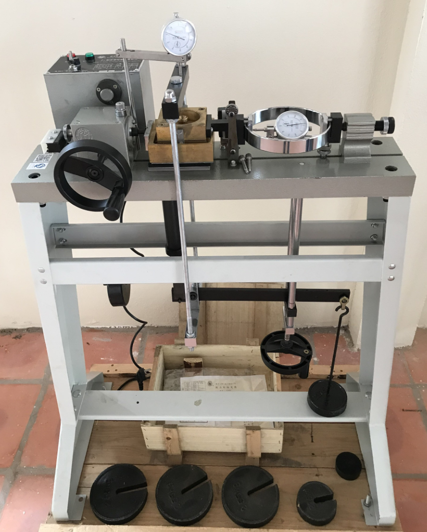 - Bộ bao gồm: Cung lực 1,2KN, hộp cắt, hộp quả cân gia tải, đồng hồ so 10x0,01mm