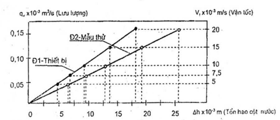 Quan hệ giữa lưu lượng, vận tốc, tổn thất cột nước của thiết bị và mẫu thử